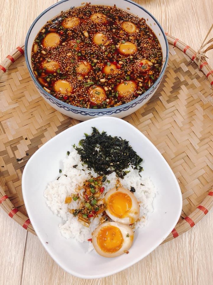 Món trứng ngâm tương ăn kèm cơm và rong biển không khác gì nhà hàng. (Ảnh: Linda Tuyet)
